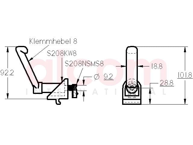 Kątownik zaciskowy 8 z dźwignią zaciskową