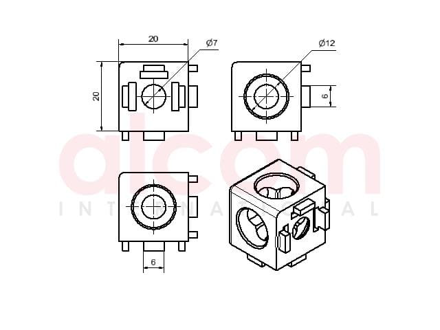 Łącznik sześcienny 6 20x20 3D