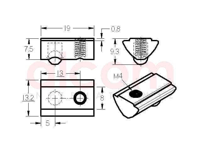 Wpust przesuwny M4, z podcięciem, długość 19mm rowek 8