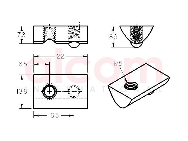 Wpust przesuwny bez podcięcia, M5 rowek 8